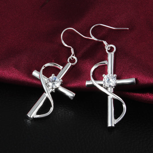 925 Sterling Silver Plated Unique Cross Dangle Earrings