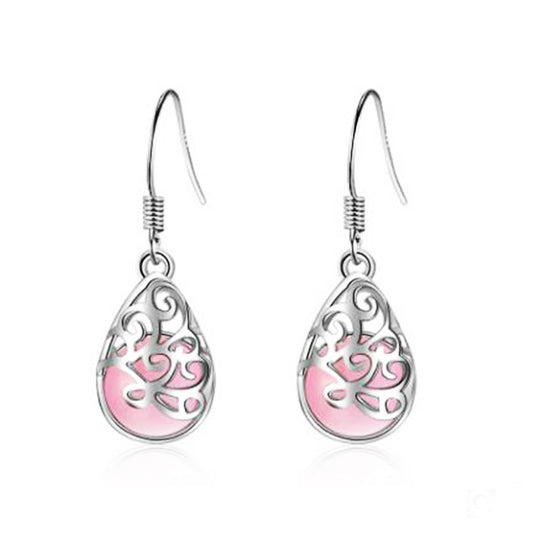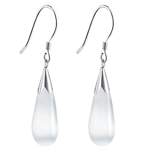 14k White Gold Plated Water Drop Moonstone Dangle Earrings