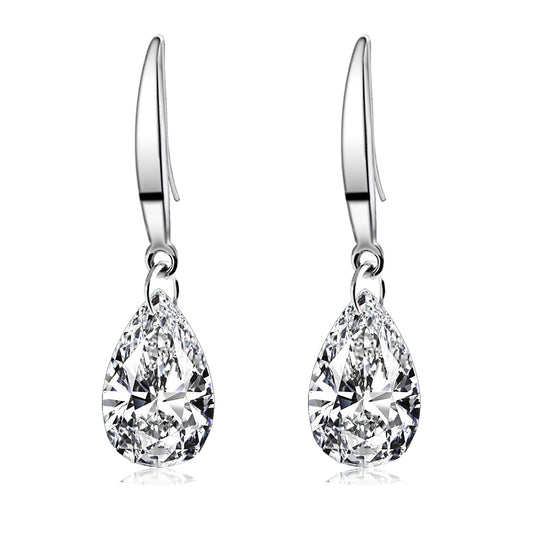 925 Silver 5A Heart Cut Cubic Zirconia Dangle Earrings