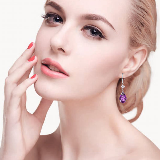 925 Silver 5A CZ Diamond Four Leaf Clover Dangle Earring (Purple)