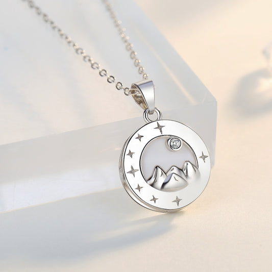925 Sterling Silver Agate Ceramics Sky View Pendant Necklace