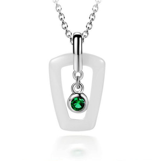 925 Sterling Silver Agate Ceramics Pendant Necklace