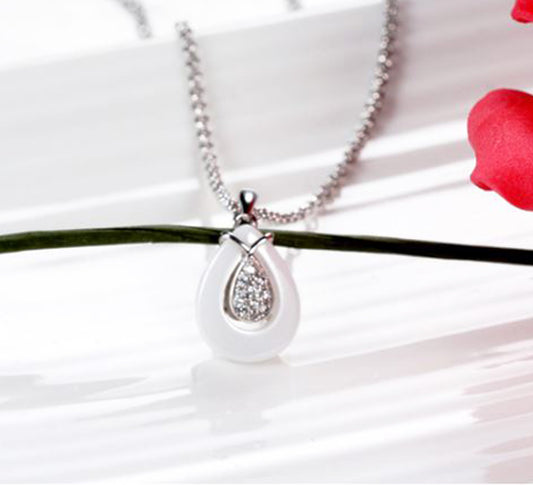 925 Sterling Silver Ceramics Angel Tears Pendant Necklace