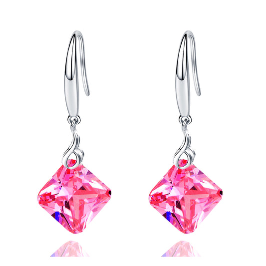 925 Silver Music Mark Square Shape CZ Dangle Earrings