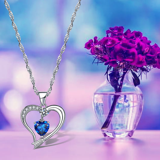 Arrow Heart Birthstone Sapphire Necklace (SEPT-09)
