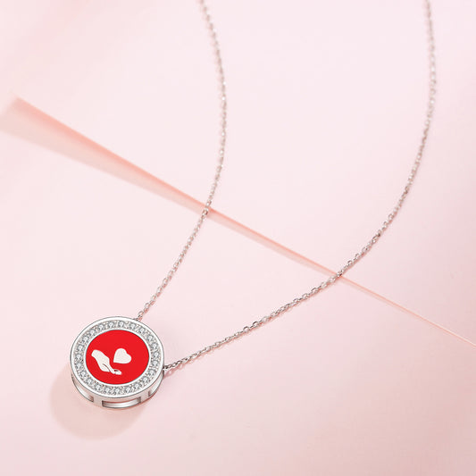 Sterling Silver CZ Diamond Enamel Love Pendant Necklace