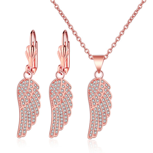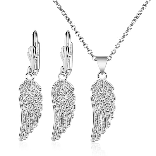 Women Jewelry Set 14k Gold Plated Simulated Diamond Angel Wings