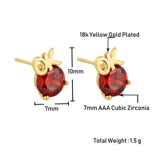 18k Yellow Gold CZ OK Stud Earrings