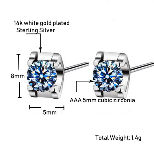 14k White Gold Plated Silver CZ Diamond Stud Earrings