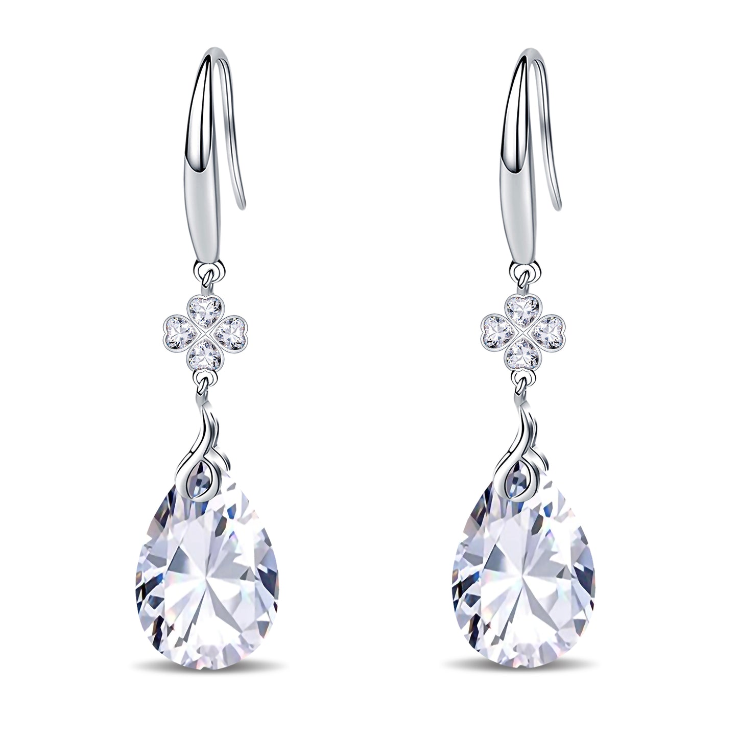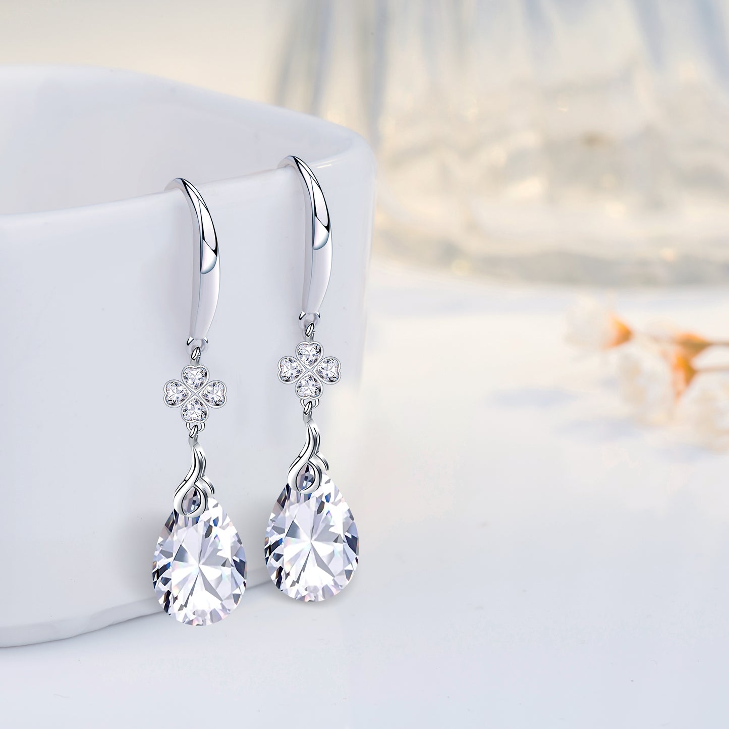 925 Silver 5A CZ Diamond Four Leaf Clover Dangle Earring (Clear)