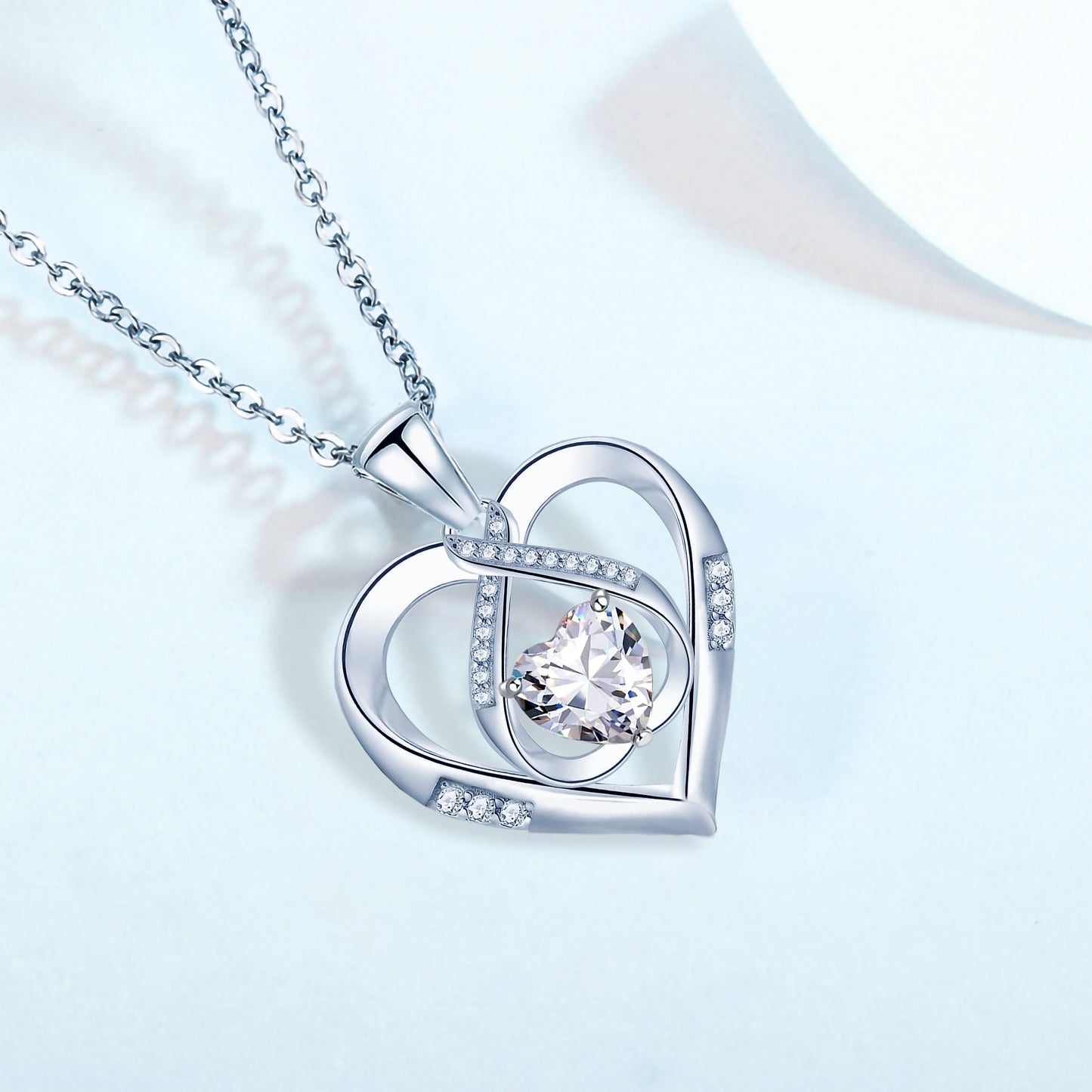925 Silver 5A Heart CZ Diamond Triple Heart Pendant Necklace