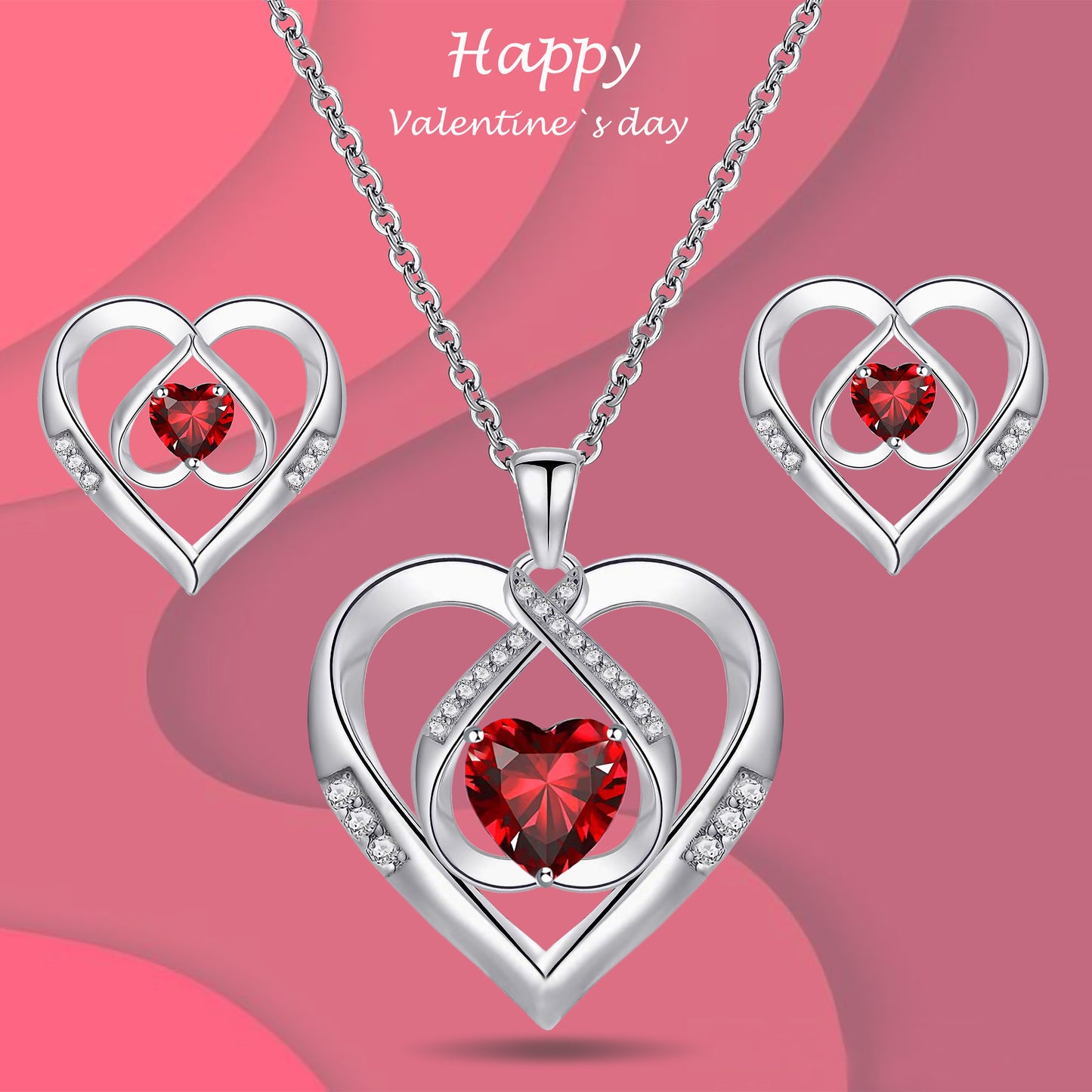925 Silver Triple Heart CZ Diamond Heart Jewelry Set