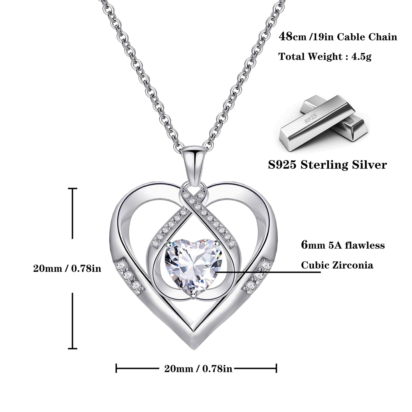 The pendant Necklace are made of 100% professional metal 925 sterling silver to protect your sensitive neck,the necklace are proved to be hypoallergenic, no harmful constituent, nickel-free, lead-free, and cadmium-free, care for your skin.You will look charming and fascinating with this kind of necklace. Elegant style suitable for women, can match your daily wear. Perfect gift for yourself and for your loved one! Match with different apparel for different occasions, such as daily wearing, office, party, ceremony, dating and more.