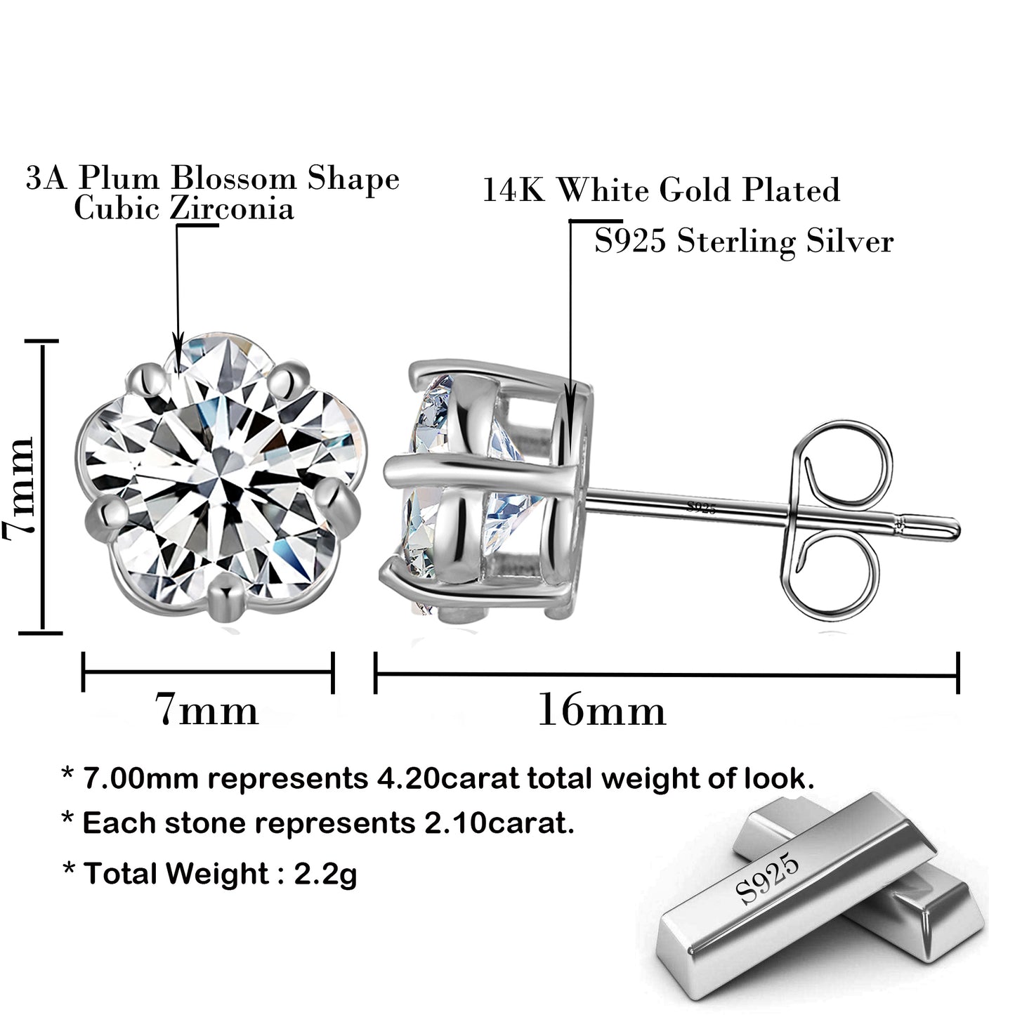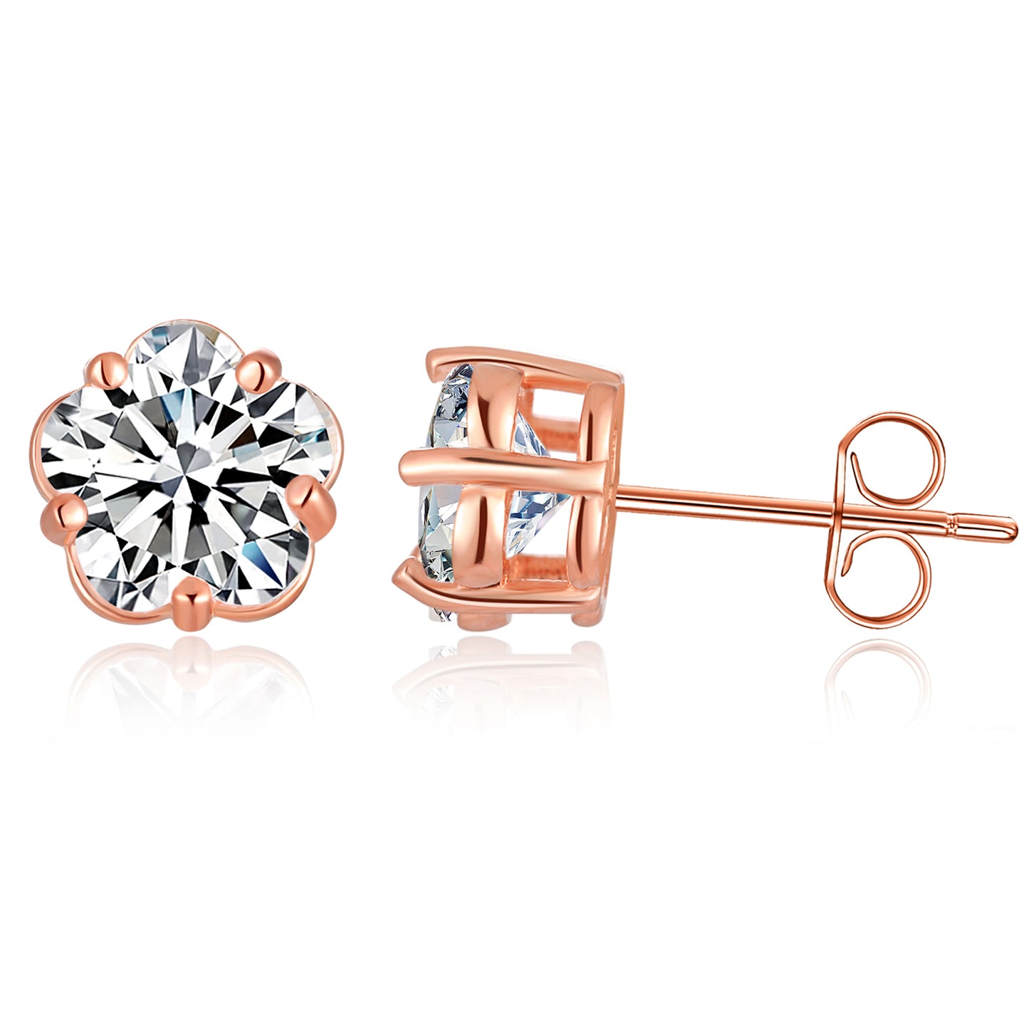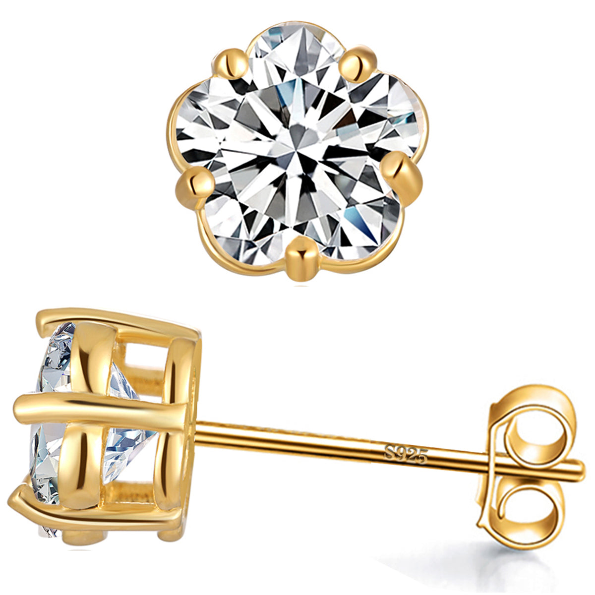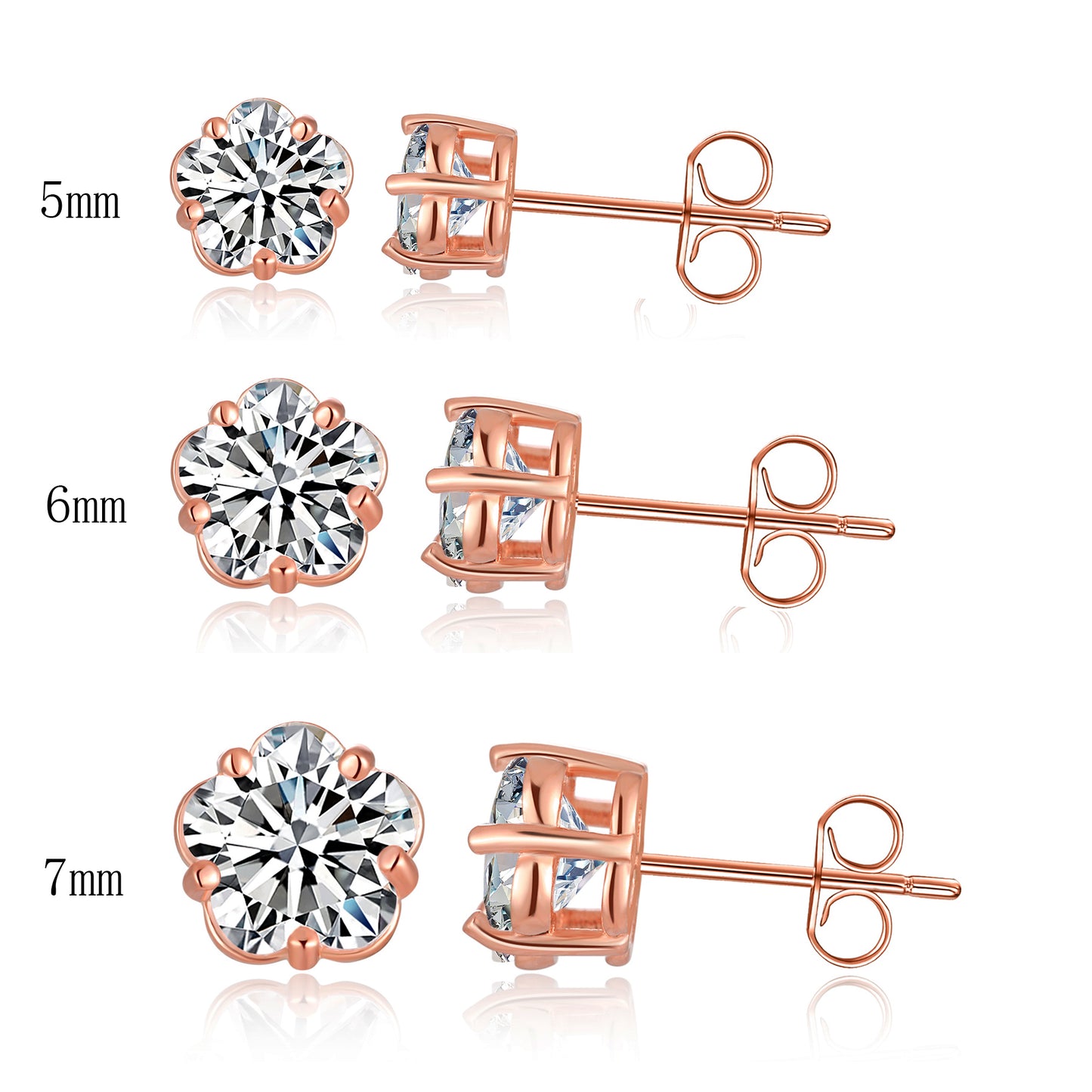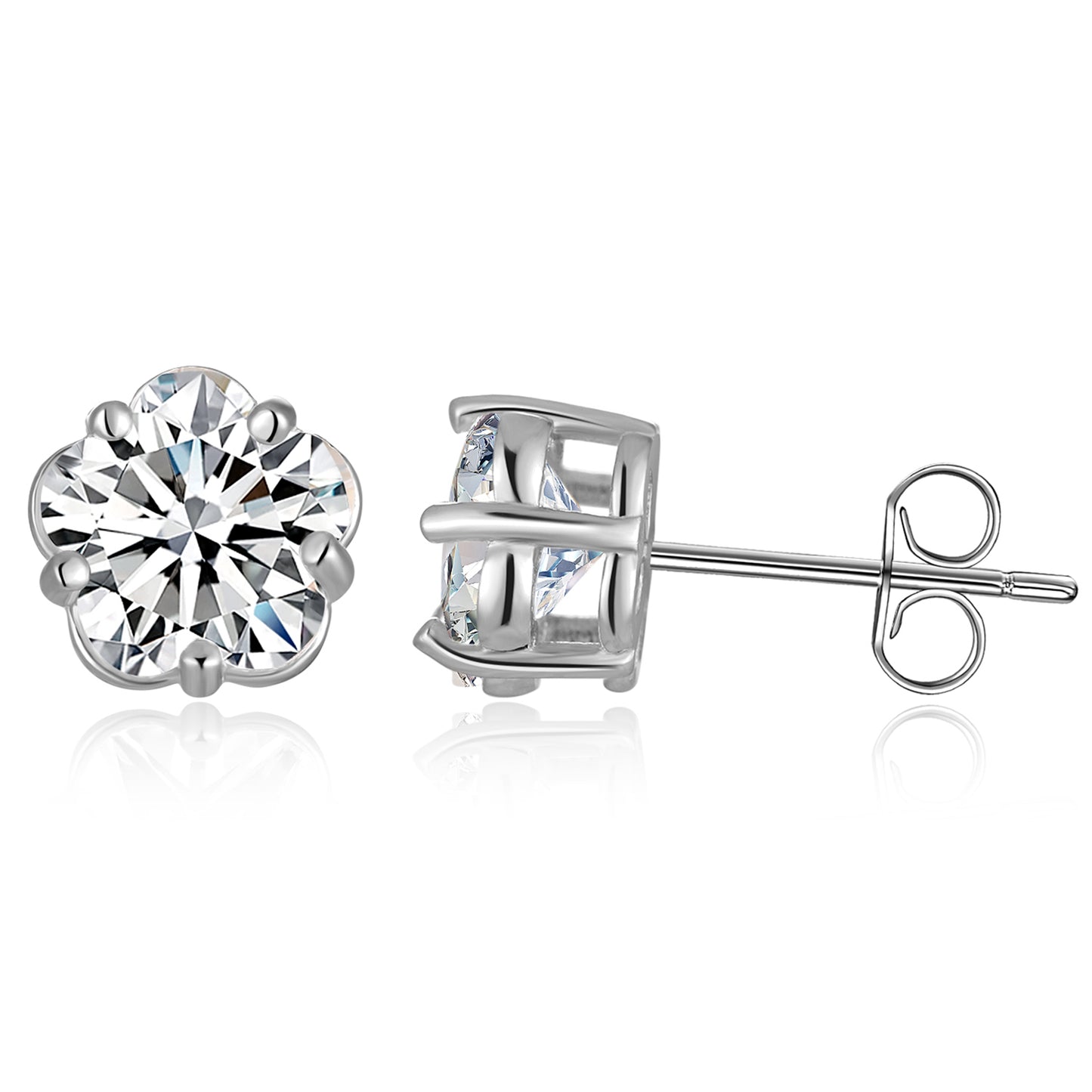 925 Sterling Silver 5 Prong Plum Blossom Stud Earrings
