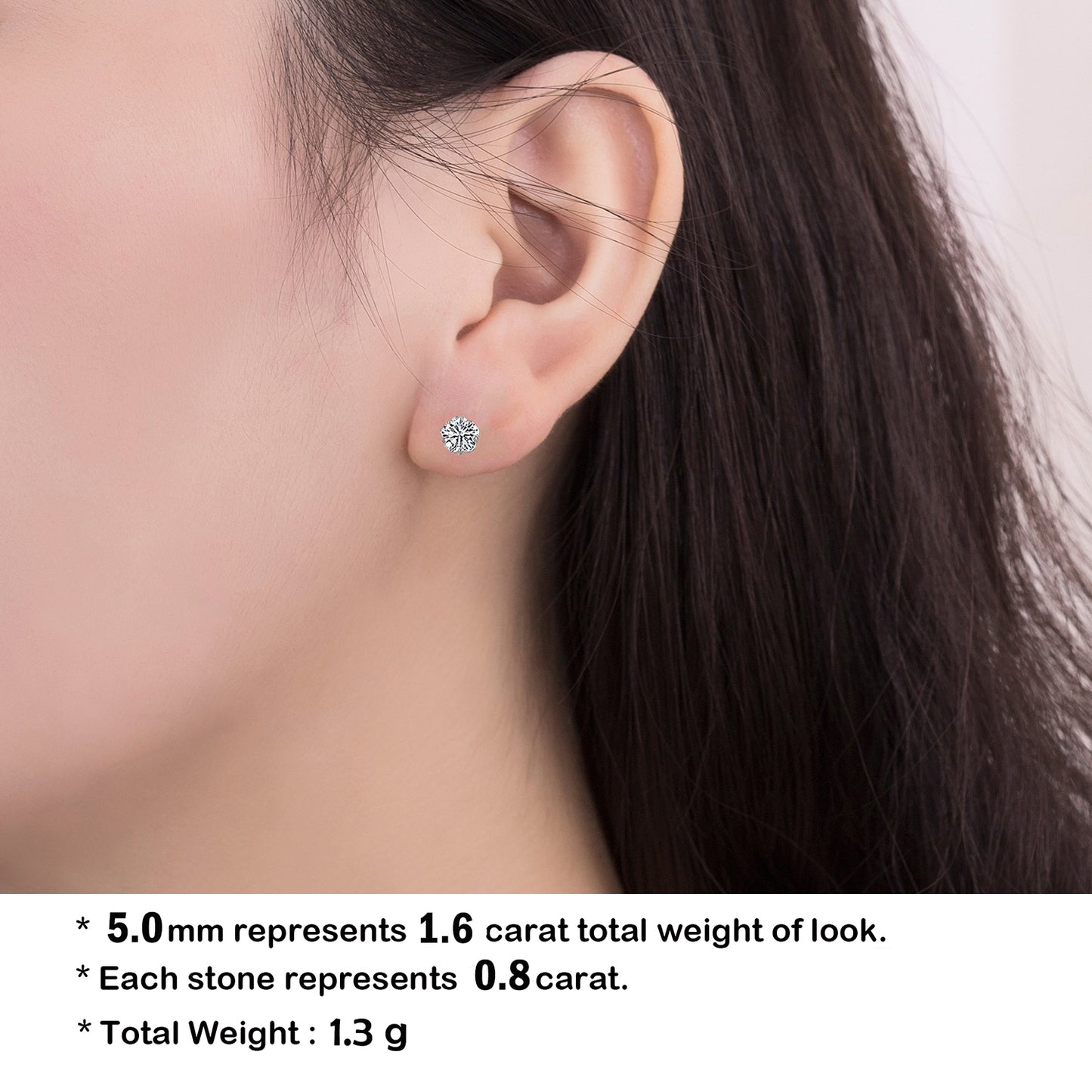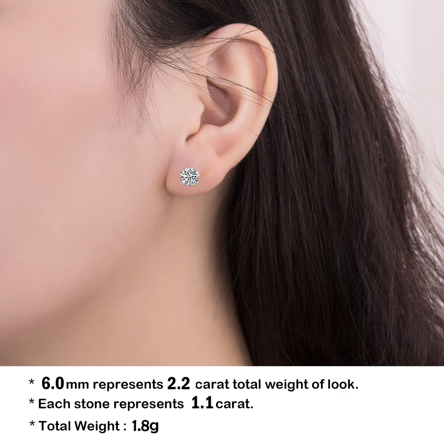 - Guide to sizes: 5.00mm represents 1.80carat total weight of a diamond look. Each stone 0.90carat. 6.00mm represents 2.8carat total weight of a diamond look. Each stone 1.4carat, 7.00mm represents 4.20carat total weight of look. Each stone represents 2.10carat.