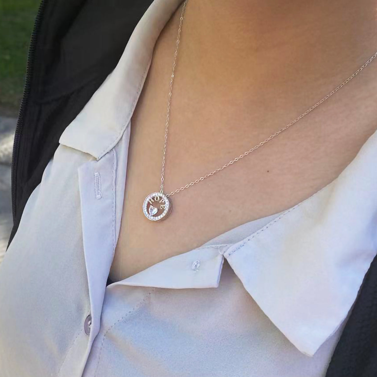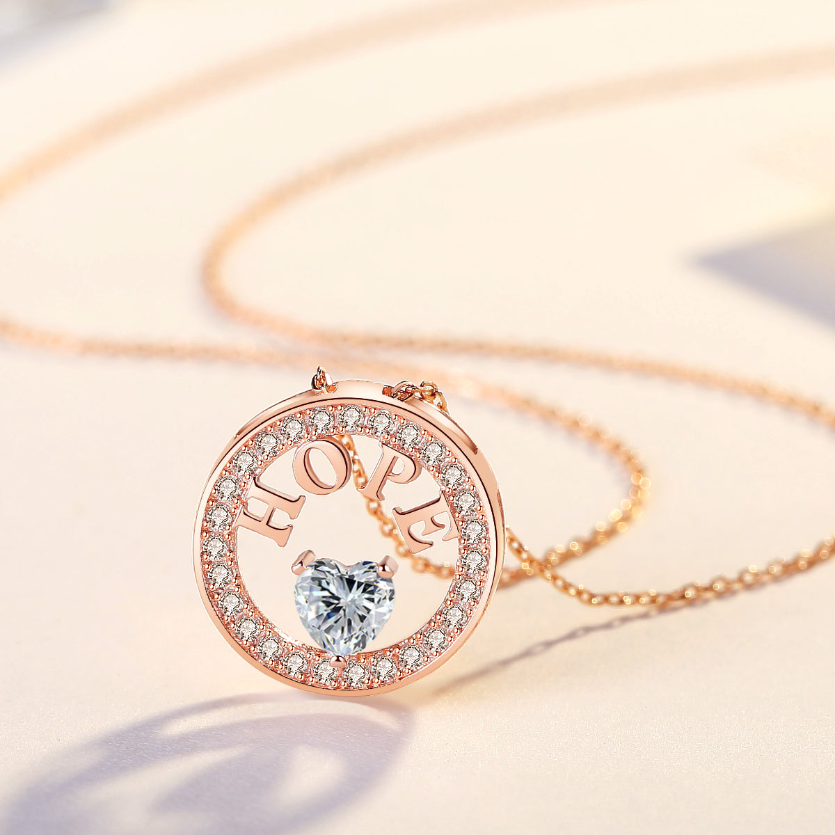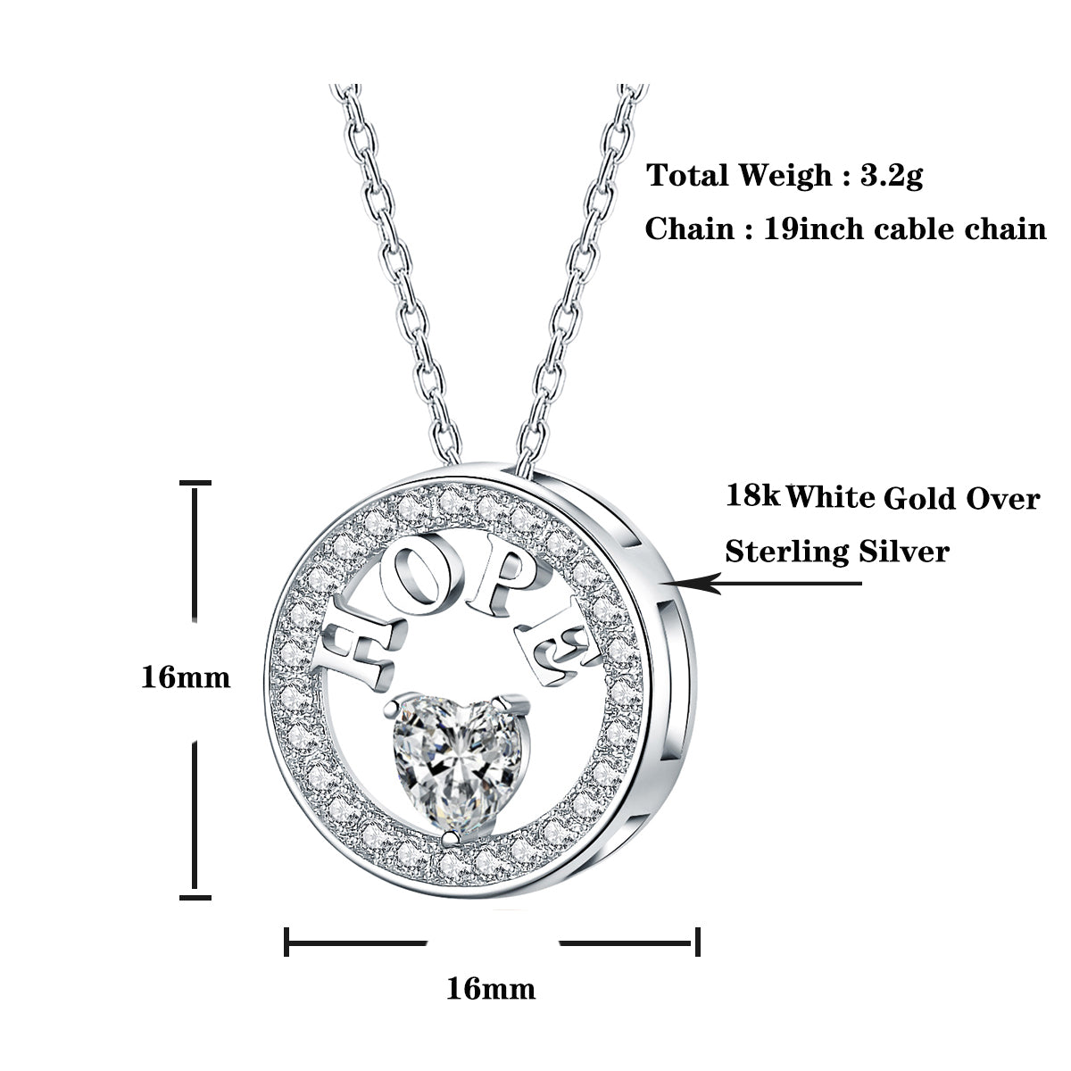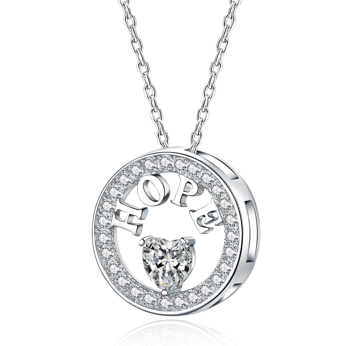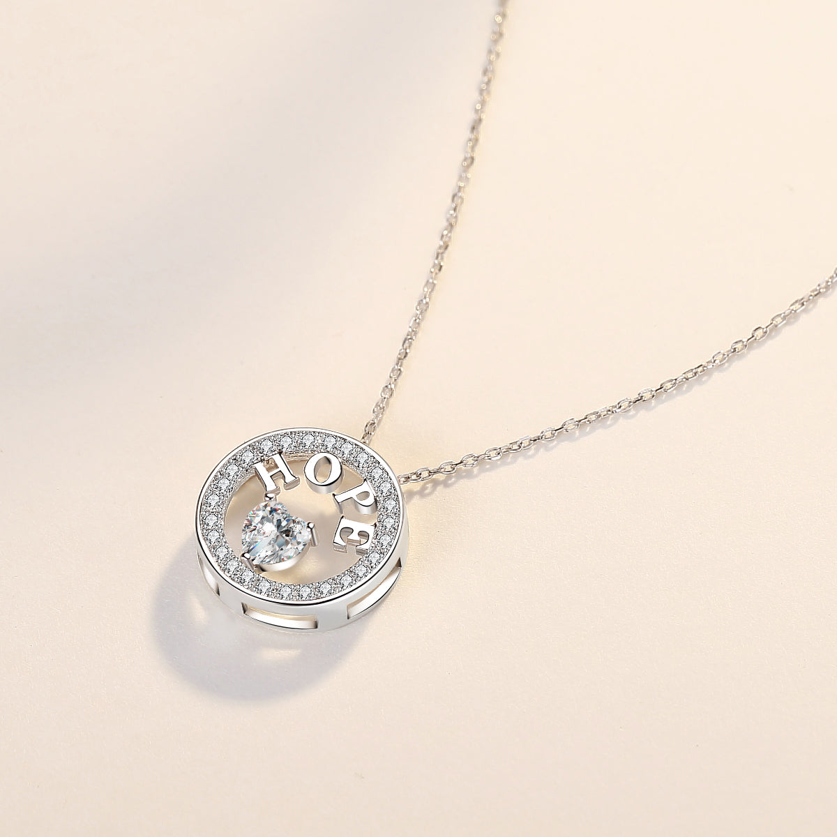 925 Sterling Silver Created Diamond "HOPE" Round Pendant Necklace