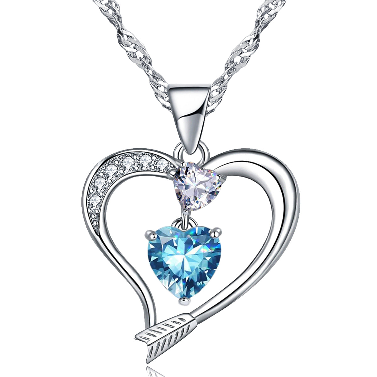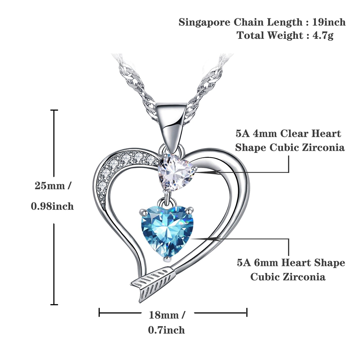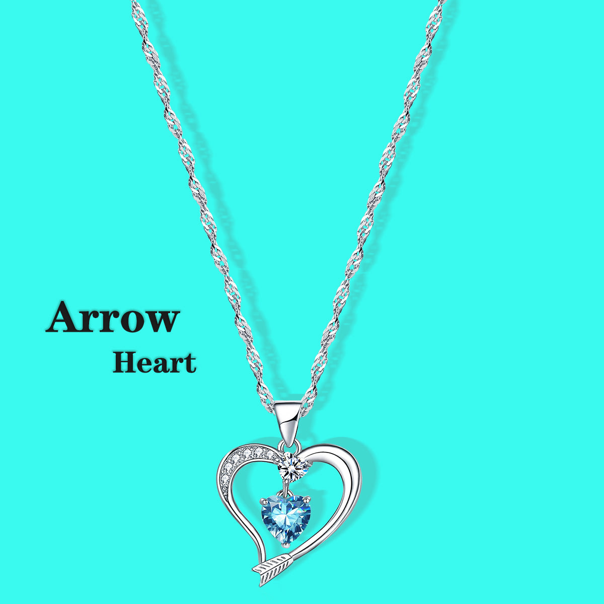 Arrow Heart Birthstone Aquamarine Necklace (MAR-03)