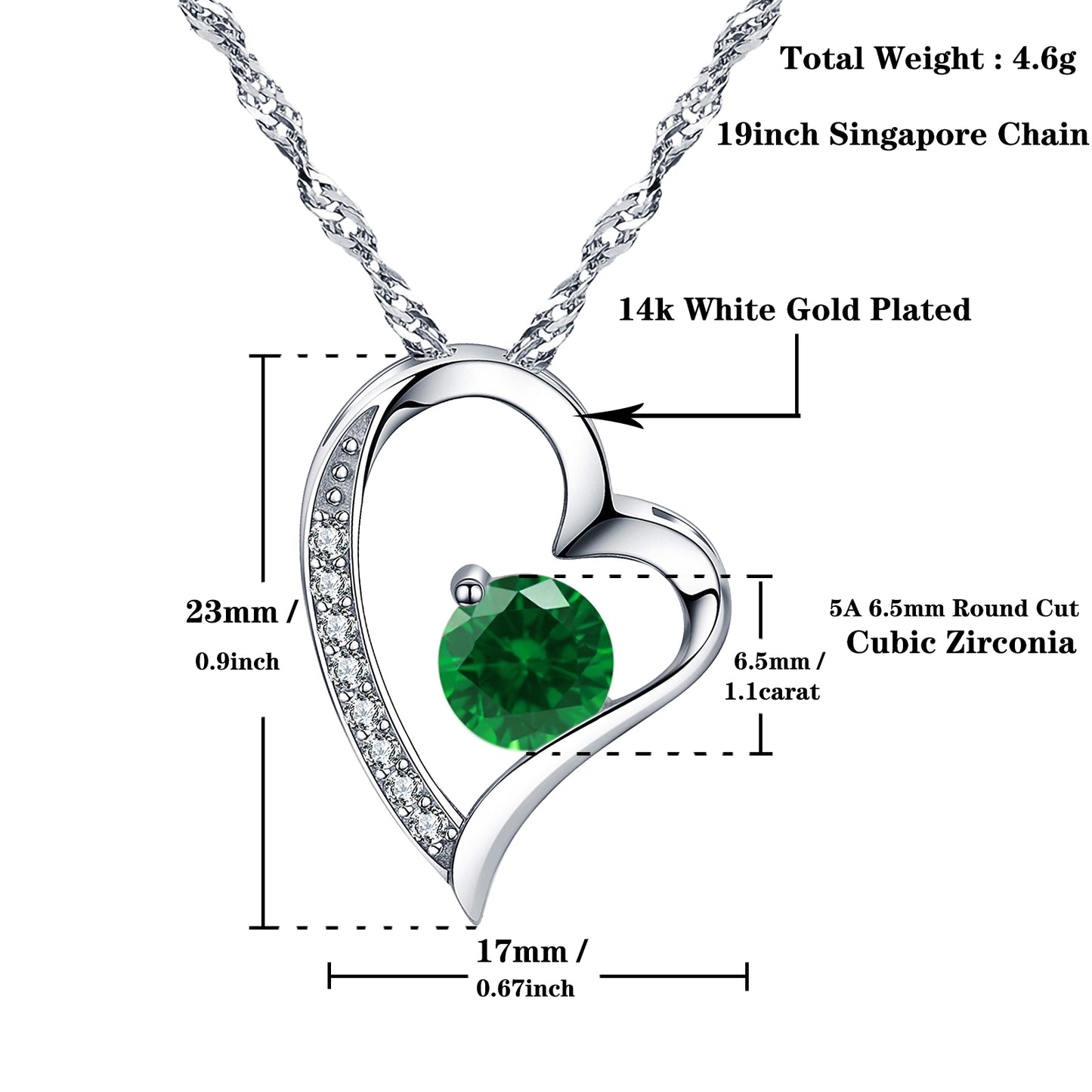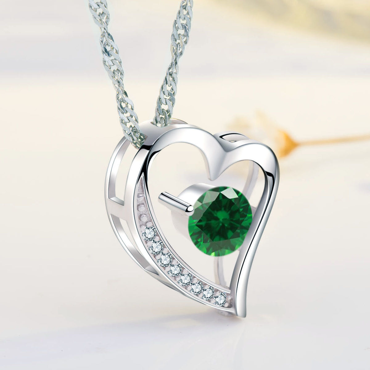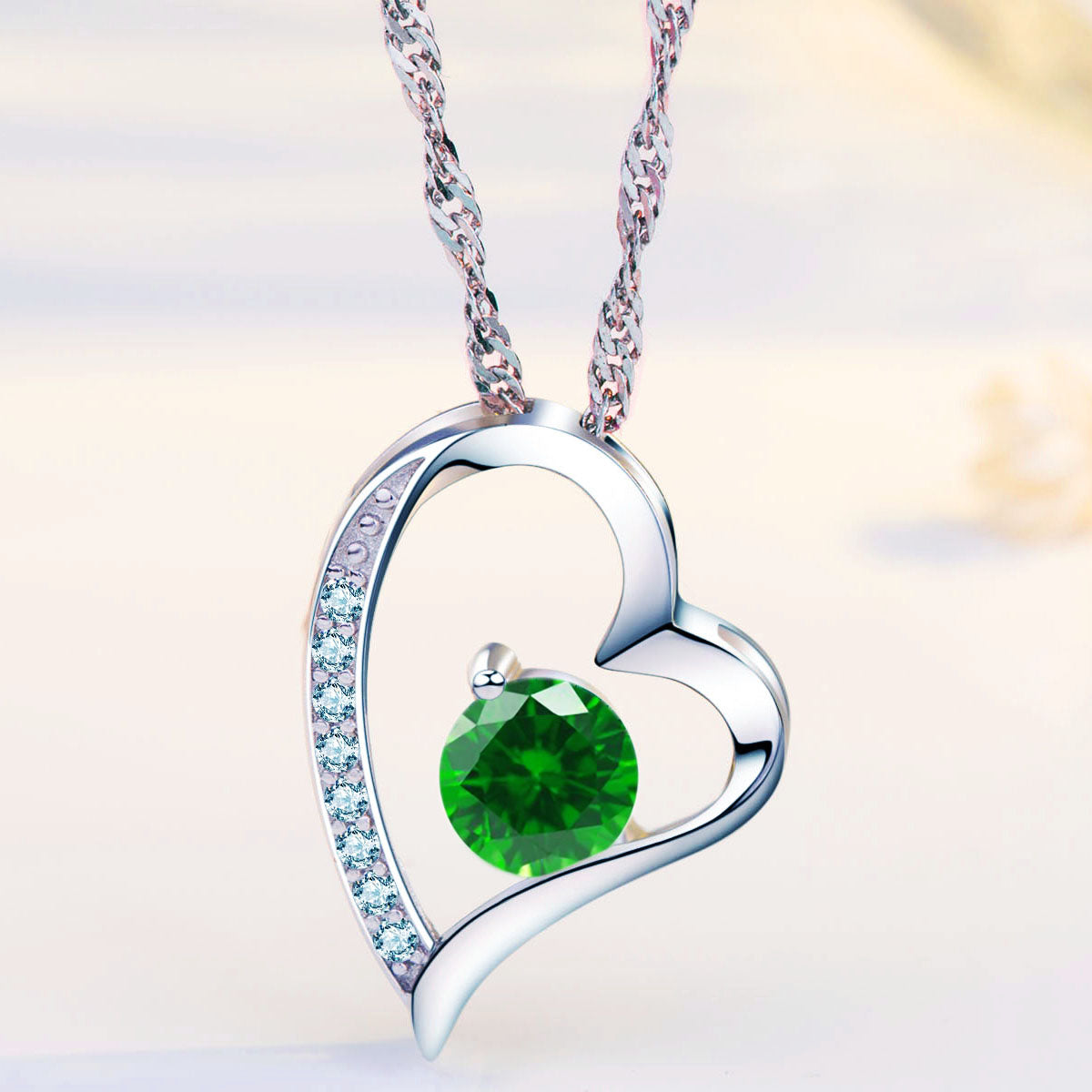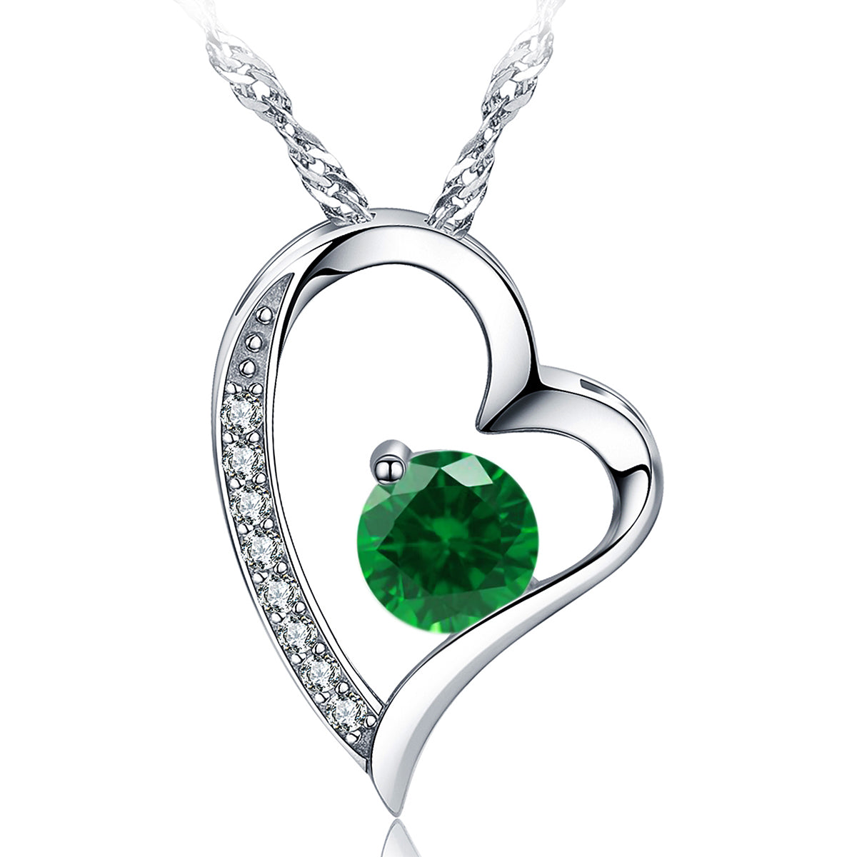 Birthstone Emerald Heart Pendant Necklace (MAY-05)