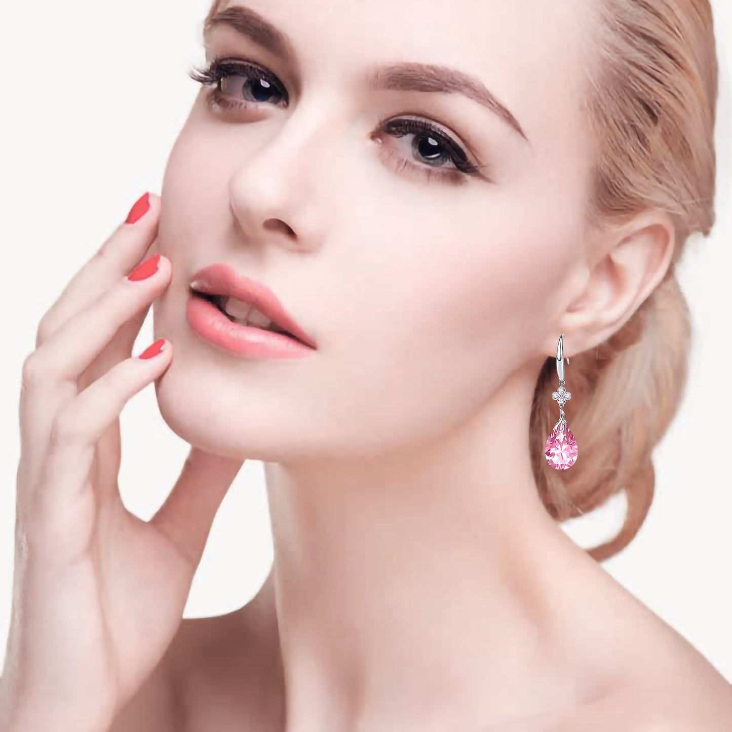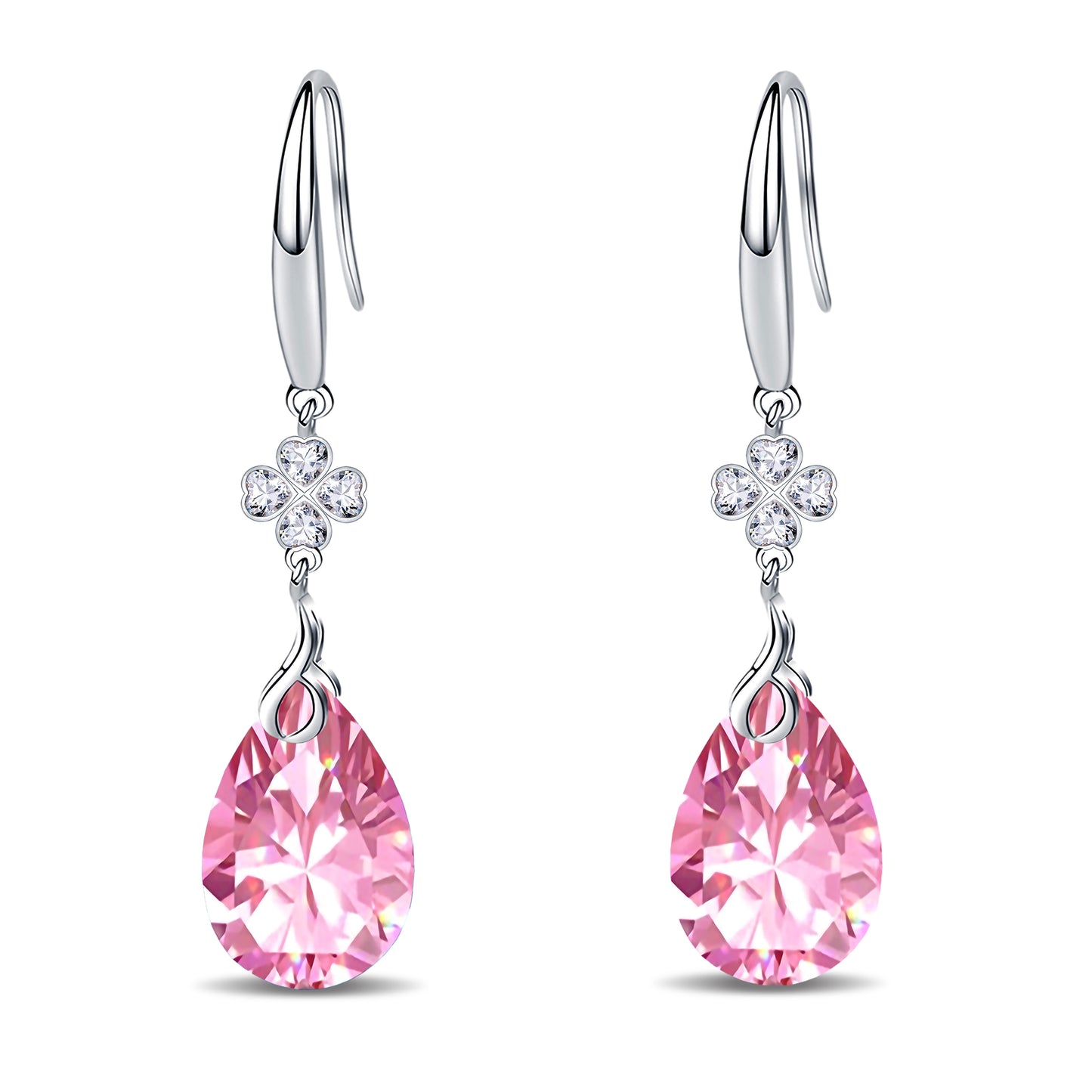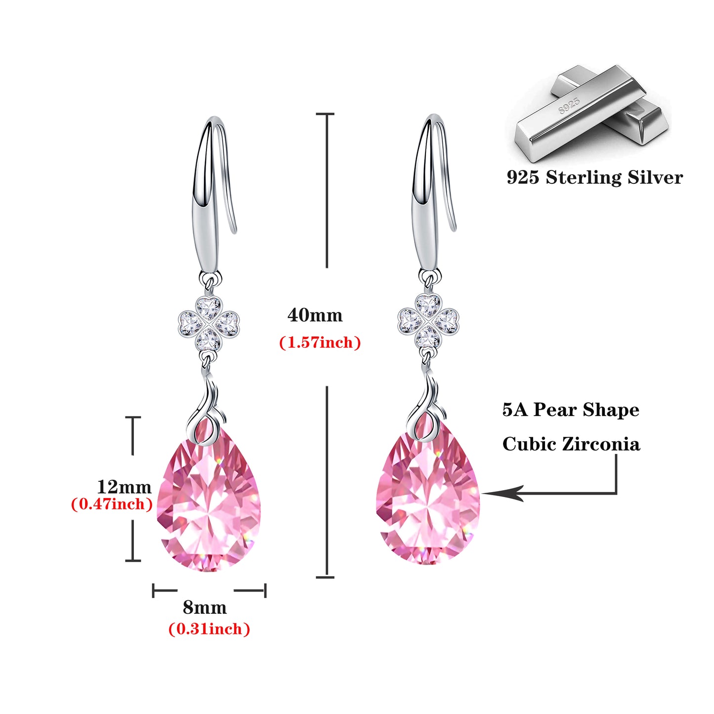 925 Silver 5A CZ Diamond Four Leaf Clover Dangle Earring (Pink)