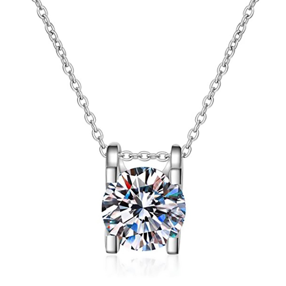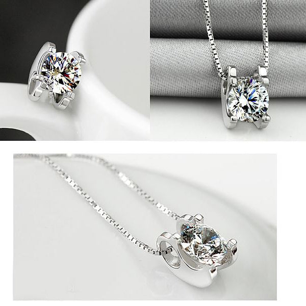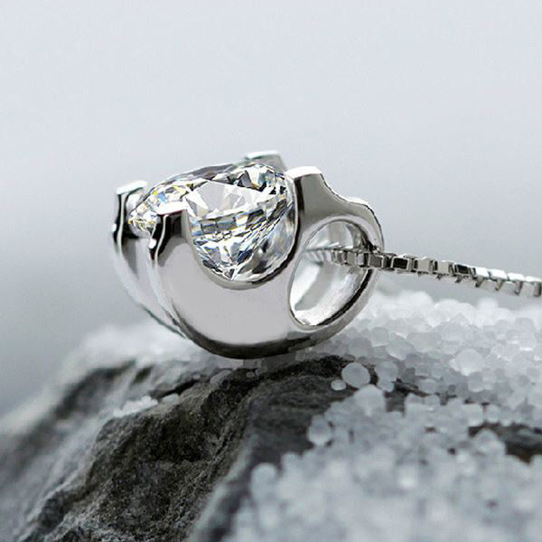 925 Sterling Silver 0.5ct Created Diamond Cube Pendant Necklace