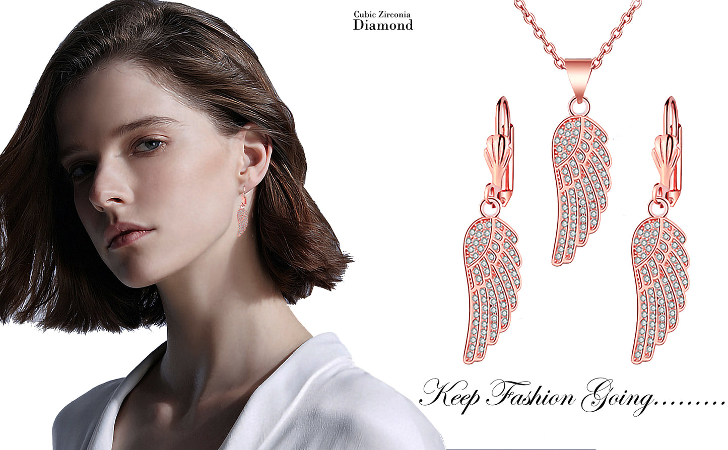 - {ANGEL WING} Classic diamond color angle- wing stunning and shining cubic zirconia wrapped in the white/rose gold Plated angel wing, glitters and sparkles. The dazzling necklace represents the symbol FOREVER LOVE and the faith of Guardian. Go get wearing it and enjoy the stunning sparkle and all the compliments