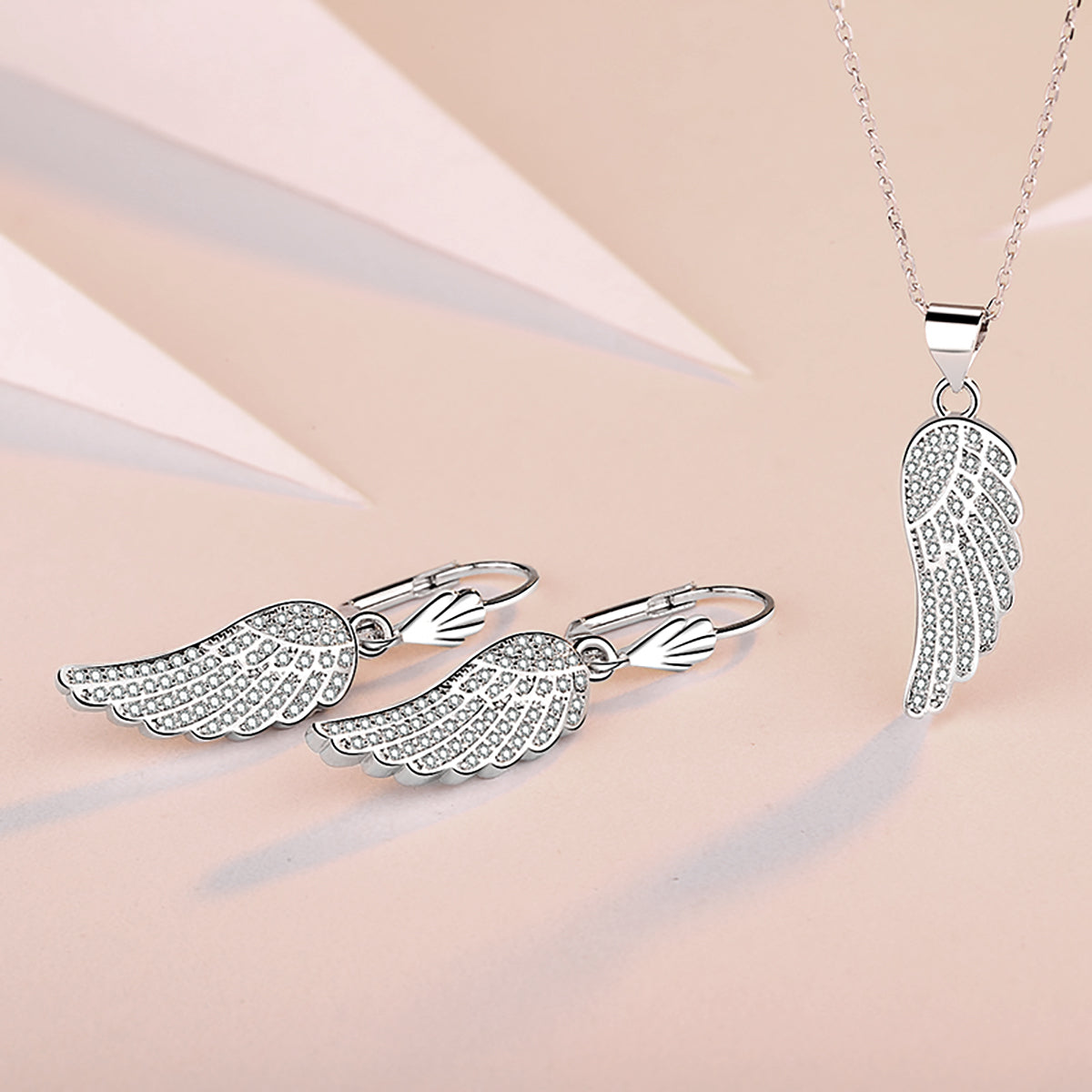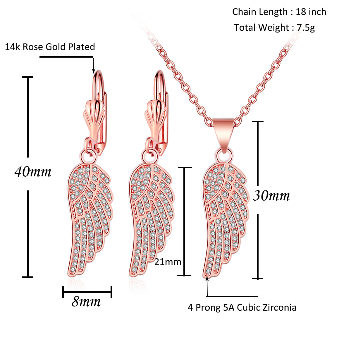 Women Jewelry Set 14k Gold Plated Simulated Diamond Angel Wings